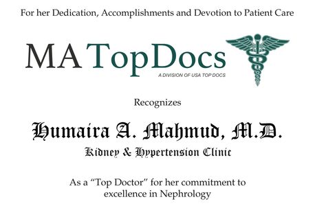 Dr. Mahmud has more than 30 years of experience as a physician. She completed medical school in 1990. She is board certified in Internal Medicine, Nephrology and Hypertension as well as in Obesity Medicine. She is a fellow of the American Society of Nephrology, diplomate of obesity medicine and a member of the Massachusetts Medical Society. She completed her residency training in Internal Medicine at St. Vincent's Hospital in 1997, and her fellowship training in Nephrology from Boston University Medical Center in 1999. She joined Boston University School of Medicine, Renal Section as a junior faculty in 2000.